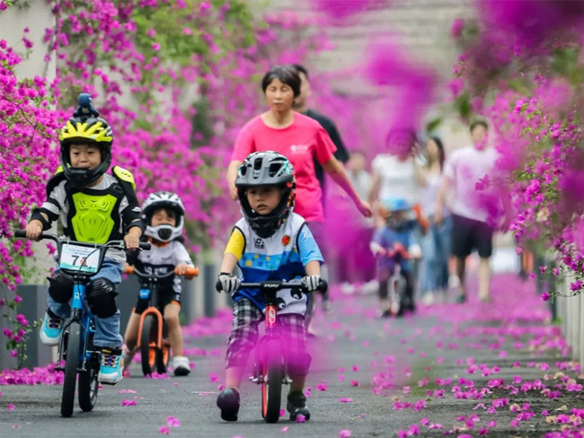 市民群众参与亲子骑跑日活动。青羊区商务局、西村大院供图